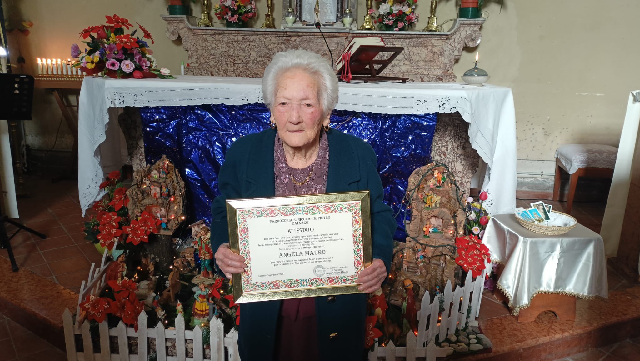 A nome mio personale e dell’intera Amministrazione Comunale, rivolgiamo alla Signora Angela e alla sua famiglia i più sinceri e affettuosi auguri per questo eccezionale traguardo. Un secolo di vita è un patrimonio prezioso di esperienze, valori, memoria e affetti che arricchiscono tutta la nostra comunità. La Signora Angela circondata dall’amore dei suoi cari, testimonianza autentica di una vita piena, vissuta con dignità, forza e dedizione.